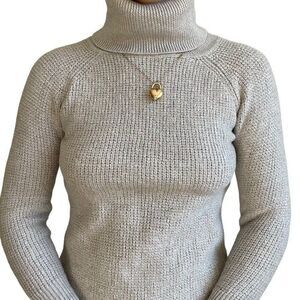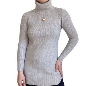 Aritzia Wilfred Free Waffle Knit Merino Wool Gray Turtleneck Tunic Sweater Sz S