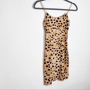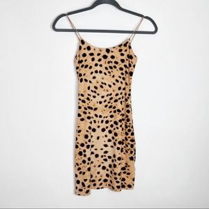 Allover leopard print Bodycon slip dress. Bungee straps. Popover style. Stretchy. Size XXS.