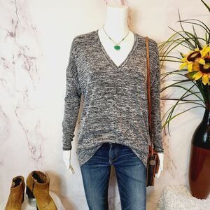 Excellent condition no flaws Aritzia pullover soft knit heathered grey v neck oversized sweater marled grey and black size xs