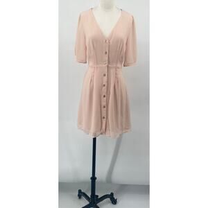 Aritzia Wilfred Freya Mini Dress Chiffon Silky Button Front Rose Quartz Light Pink