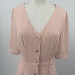 Aritzia Wilfred Freya Mini Dress Chiffon Silky Button Front Rose Quartz Pink 4
