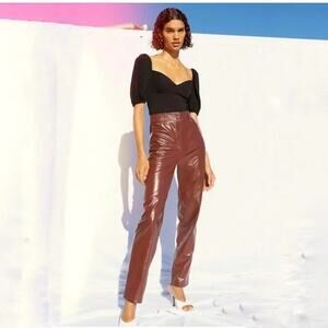 Aritzia Wilfred Glossy Faux Leather Pant in Maroon Rustique Size 4