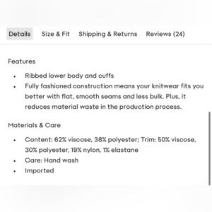 Fully fashioned construction means your knitwear fits you better with flat, smooth seams and less bulk. Plus, it reduces material waste in the production process.