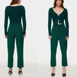 Aritzia Wilfred Green Tie Bow Belted High Rise Ankle Trouser Pants Office Work 2