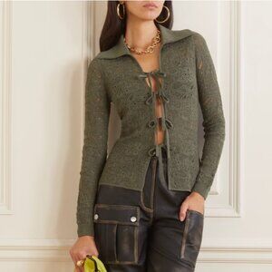 This is a slightly cropped tank with a high neckline and a scalloped hem. It's knit with super-fine, all-season crepe yarn. It's been recently redesigned for an even more flattering it. Aritzia Wilfred Halter Tank Baby Blue Scallop Trim Crop Small Lightweight Rib finish along neckline, armhole and hem Dry handfeel 65% rayon, 35% nylon Size small Gently used, please see pics for details