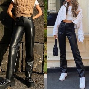 Aritzia Wilfred High-waisted Vegan Leather Pants in Black. These are high-rise straight-leg pants with five-pocket styling and a universally flattering fit. They’re made with our innovative Vegan Leather that looks and feels like the real thing. They have an authentic drape and a soft sheen that feels right from day one.