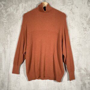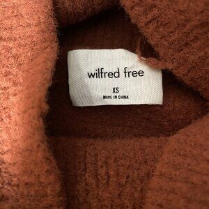 Aritzia x Wilfred Free Hush Knit Italian Yarn Long Sleeve Turtleneck Sweater in XS. Oversized fit and could easily fit up to a Medium. Color is a cinnamon-y burnt orange. Material is super soft and cozy!