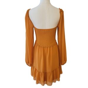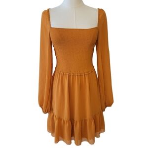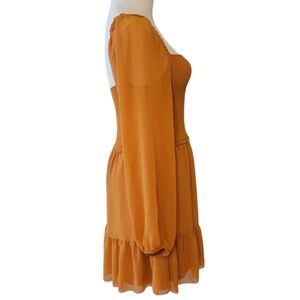 In very good condition, golden brown orange color, Chiffon sleeves, 100% polyester