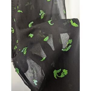 Aritzia Wilfred Lilith Blouse Cropped Smocked Zip Back Black Leaf Print Sheer L