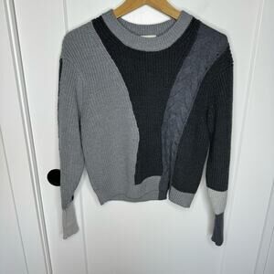 Aritzia Wilfred Lonell Gray Colorblock Cable Knit Merino Wool Sweater Size XXS