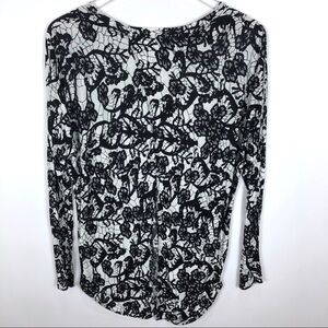 Aritzia Wilfred Long split back long sleeve. Graphic lace print. Split open back. Long sleeve shirt. In excellent condition. Size small.