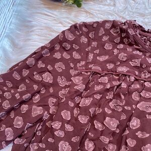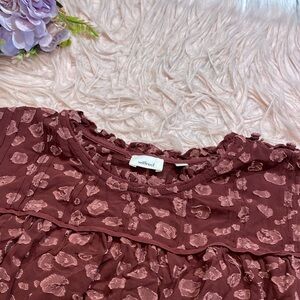 Aritzia Wilfred Lourdes burgundy Chiffon Prairie Blouse. This top is in great used condition
