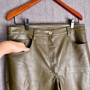 Aritzia Wilfred Melina Bough Green High-waisted Vegan Leather Pants Plus Size 16