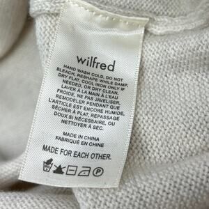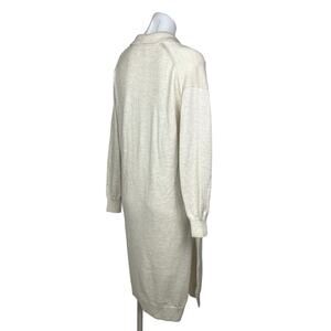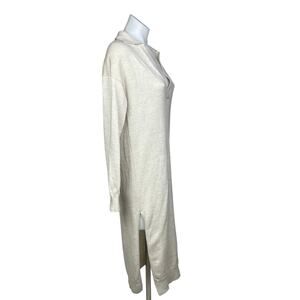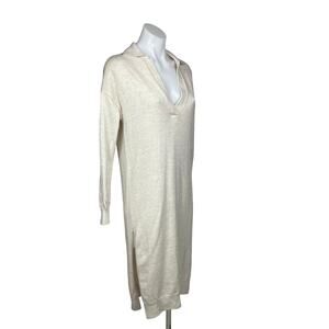 Aritzia Wilfred NWOT Women’s Cream Off White Oversized Long Sleeve V-Neck Collar Knit Side Slit Ribbed Edge Midi Calf Length Sweater Dress Size: 2XS (It’s oversized and can fit Small and Medium, too) Condition: New Without Tags Bust: 18.5” Length: 41” *Measurements are taken lying flat. Not all around.