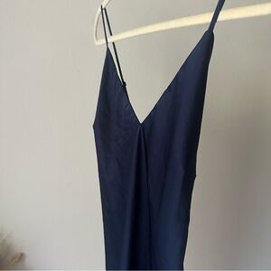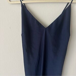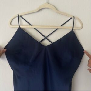Aritzia Wilfred Navy Slip Satin Mini Dress Cross back Size large