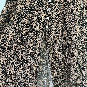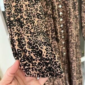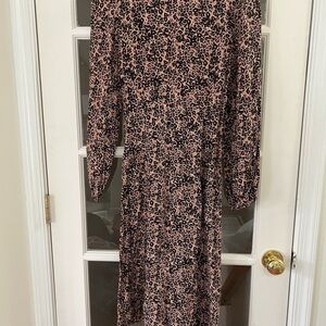 This is a midi-dress with a fitted bodice, empire waist and voluminous lantern sleeves. Recently redesigned for an even more flattering fit, it's made with drapey, pebbled fabric. The custom print is exclusive to the brand.