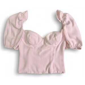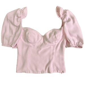 Aritzia Wilfred Novella Pink Smocked Crop Top Puff Sleeve Size S
