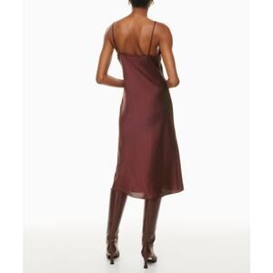 Aritzia Wilfred Only Slip Satin Midi Dress Sleeveless Bias Cut Burgundy Womens L
