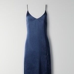Aritzia Wilfred Only Slit Slip Midi Dress Classic Navy Blue Size XS