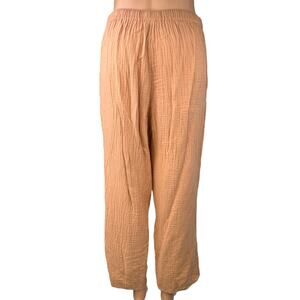 Aritzia Wilfred Orange Tan Elastic Waist Straight Wide Pull On Trousers Pants S