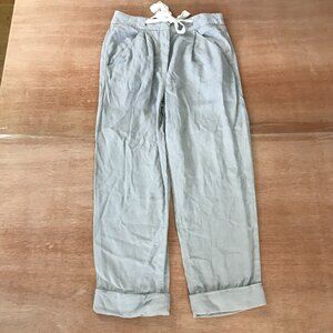 Aritzia Wilfred Pants Women 2 Gray Lyocell Linen Tie Waist Pocket Cuffed Preppy 13612