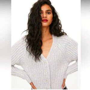Aritzia Wilfred Pastel Poesy Chunky Knit Cardigan Cotton Candy Lurrex S $175
