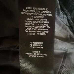 MATERIAL: 62% Recycled Polyester/ 27% Viscose/ 8% Wool/ 3% Elastane