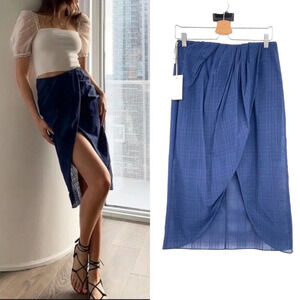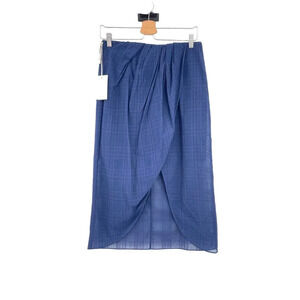 Aritzia Wilfred Pursuit Skirt in Classic Navy Blue Plaid Check Sarong Size 10