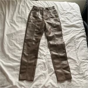 Aritzia Wilfred Rebel Taupe Faux Leather High Rise Pants