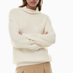 Aritzia Wilfred Ribbed High Neck Sweater Relaxed Fit Cream Size XS