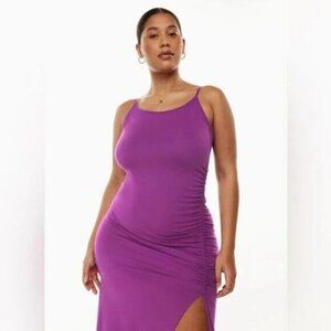 Aritzia Wilfred Riddle Ruched Midi Tank Dress In Wild Berry Purple Size Small