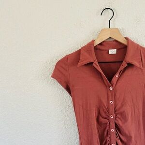 Aritzia Wilfred Ruched Front Button Up Mini Dress