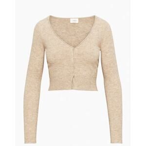 Aritzia Wilfred Santorini V-Neck Knit Cardigan Sweater Heather Tannin Size XS