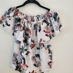 Aritzia Wilfred Silk Floral Off Shoulder Blouse. The Promener blouse. Beautiful cream color with floral print.