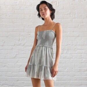 Aritzia Wilfred Size XXS Catamaran Ruffle Mini Dress Silver Sage Green Coquette