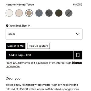 Never worn, new with tags! Size S, color heather nomad taupe. Currently listed on Aritzia's site for $118.