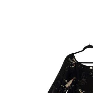 Aritzia Wilfred Foulard Black Multicolored Birds Motif Talence Off-the-Shoulder Micro Pleat Detail Elasticized Neckline Long Blouson Semi Sheer Sleeves Elasticized Cuffs Adjustable Silk Ties at Shoulder & Cuffs Lined Lightweight Flowy Boho Peasant Cottagecore Top Size Medium - Excellent condition.