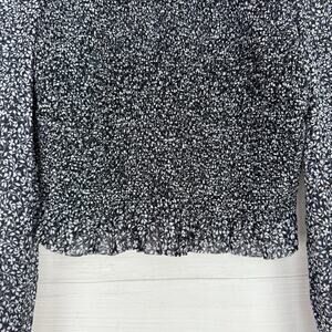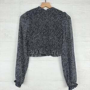 Aritzia Wilfred Tempest Blouse Size S Black Floral Smocked Puff Sleeve Cropped