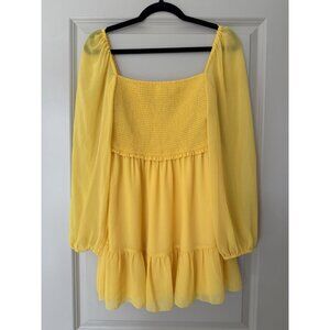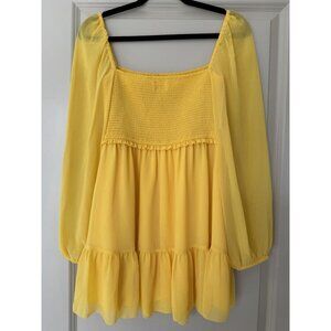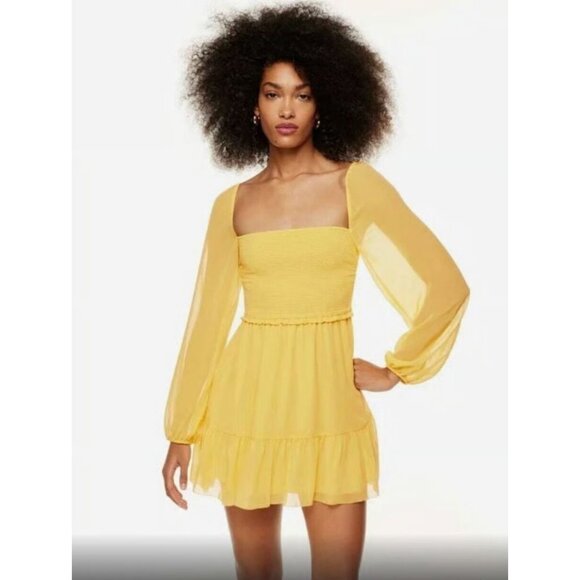 Aritzia Wilfred Tempest Mini Dress in Yellow Size Small Long Sleeve Squareneck