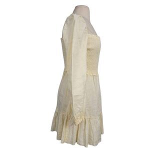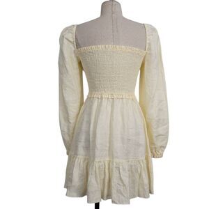 Aritzia Wilfred Tempest Organic Linen Smocked Mini Dress Sz S Tapioca Yellow