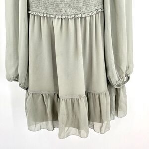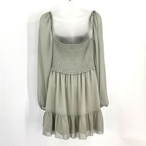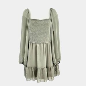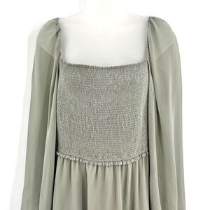 Aritzia Wilfred Tempest Short Dress L Green Smocked Chiffon Sleeves Fairycore