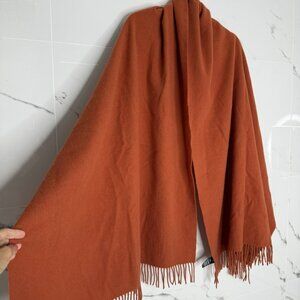 Aritzia Wilfred Tessuto 100% Wool Orange Oversized Blanket Scarf EUC Warm Cozy