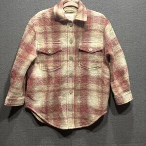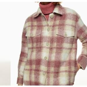 Aritzia Wilfred The Ganna Shirt Jacket in A Pink Plaid Wool Blend Womens Size S