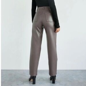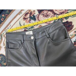 Aritzia Wilfred Faux vegan Leather Straight leg Pants Womens 2 Gray Green High Rise