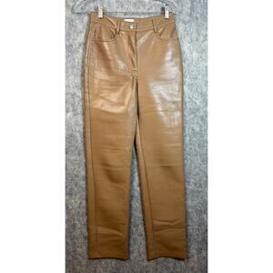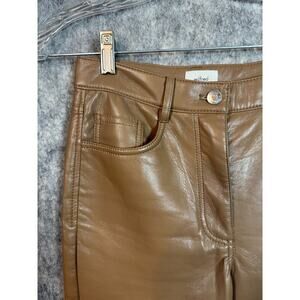 Aritzia Wilfred The Melina Vegan Leather High Waist Beige Straight Pants Size 2