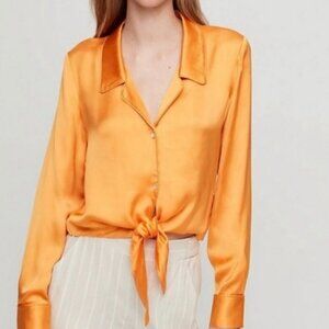 Aritzia Wilfred Tie-Front Blouse Satin Button Front Top Marigold Size S