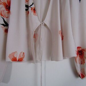Aritzia Wilfred "Tia" top - floral print pattern, front tie closure, puff sleeves, drapey and lightweight.