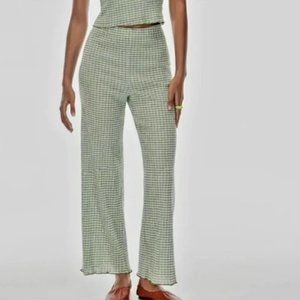 Aritzia Wilfred Verona green & baby blue checked pants