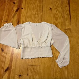 Aritzia Wilfred Wistful Blouse Smocked V-Neck Blouse Light Birch Women’s SZ LRG