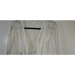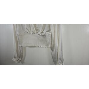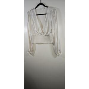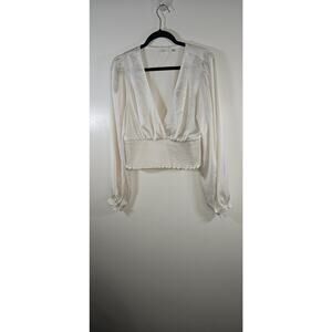 Elevate your wardrobe with this beautiful Aritzia Wilfred Wistful Blouse. The smocked V-neckline adds a touch of elegance to the blouse, making it perfect for any occasion. The white color of the blouse makes it easy to pair with any outfit, while the XL size ensures a comfortable fit for those who wear it.
